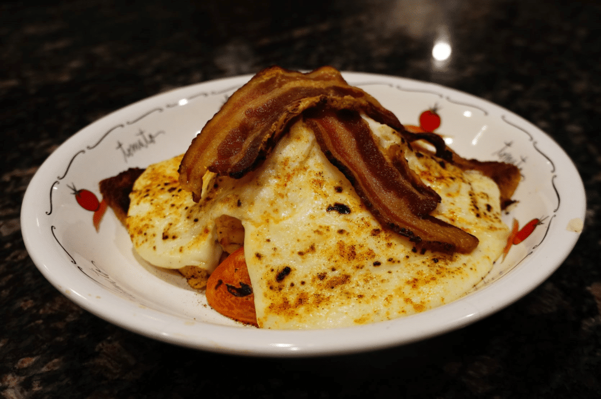 This sandwich is also known as the Kentucky Hot Brown but just as a Philly Cheesesteak is never called that in Philly, in Kentucky it’s just a Hot Brown. However, this sandwich in not “just” a sandwich!
