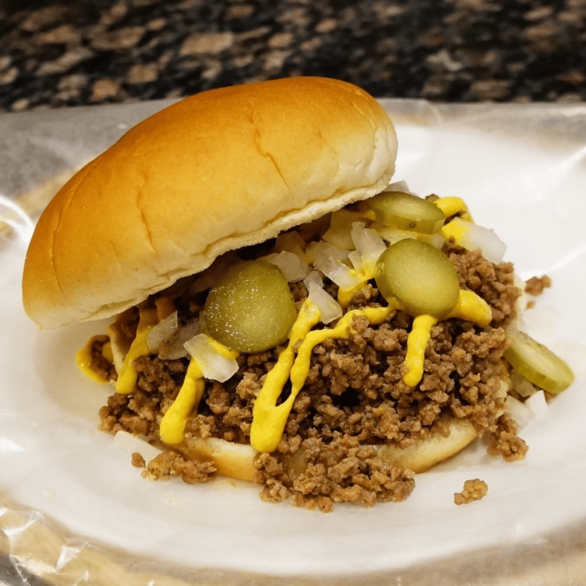 Also known as a tavern or maid-rite, this sandwich-minus the various toppings-is basically the same where ever it’s made. Sauteed/steamed seasoned ground beef is served “loose” on a soft bun. There are a few things I’d like to mention though.