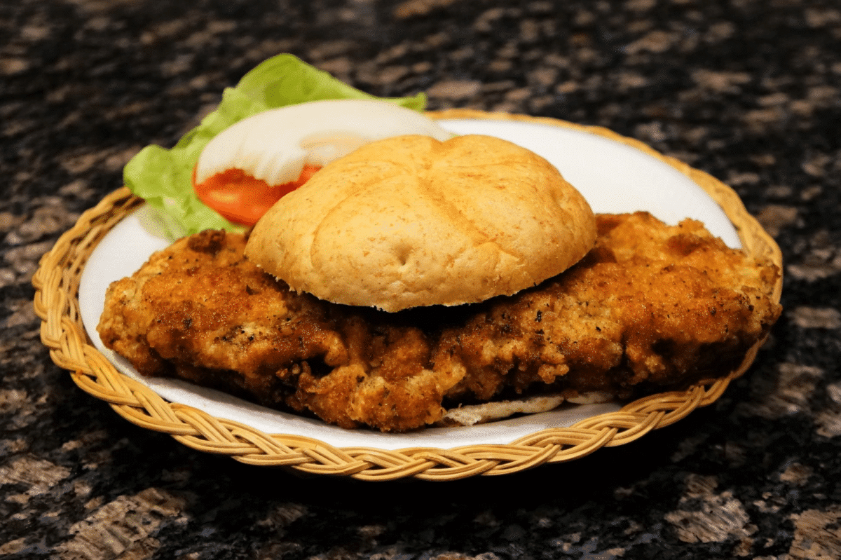 The first time I saw this I immediately thought, “This is a sandwich?” Being from Texas I thought it looked like a chicken fried steak with a hat! How could this be a legit sand? The next thought was. “How would you eat it?” Turns out it’s legit. It does have a connection to my beloved CFS and people are truly ingenious when it comes to eating their favorite food. Brings back my faith in humanity.