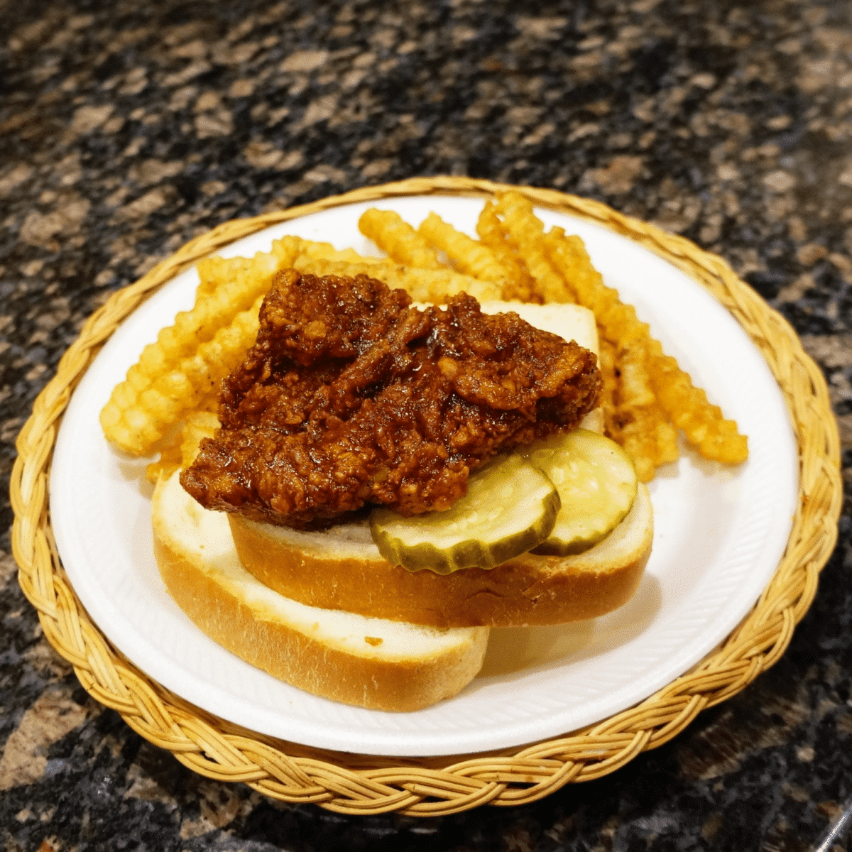 Today I present to you the Nashville Hot Chicken Sandwich! First off, let me say that I spent 3 years living in Memphis, TN and living, for awhile, on Union Ave. I also l lived close to the other side of the state, just inside VA and would visit Bristol, TN often. I’ve had the pleasure of eating the glorious BBQ that Tennessee is known for from one end to the other. But this was way back in the 80’s and I was just a transplanted white girl who didn’t know nothing about what would become a national phenomenon in the next century. So close yet so far away!