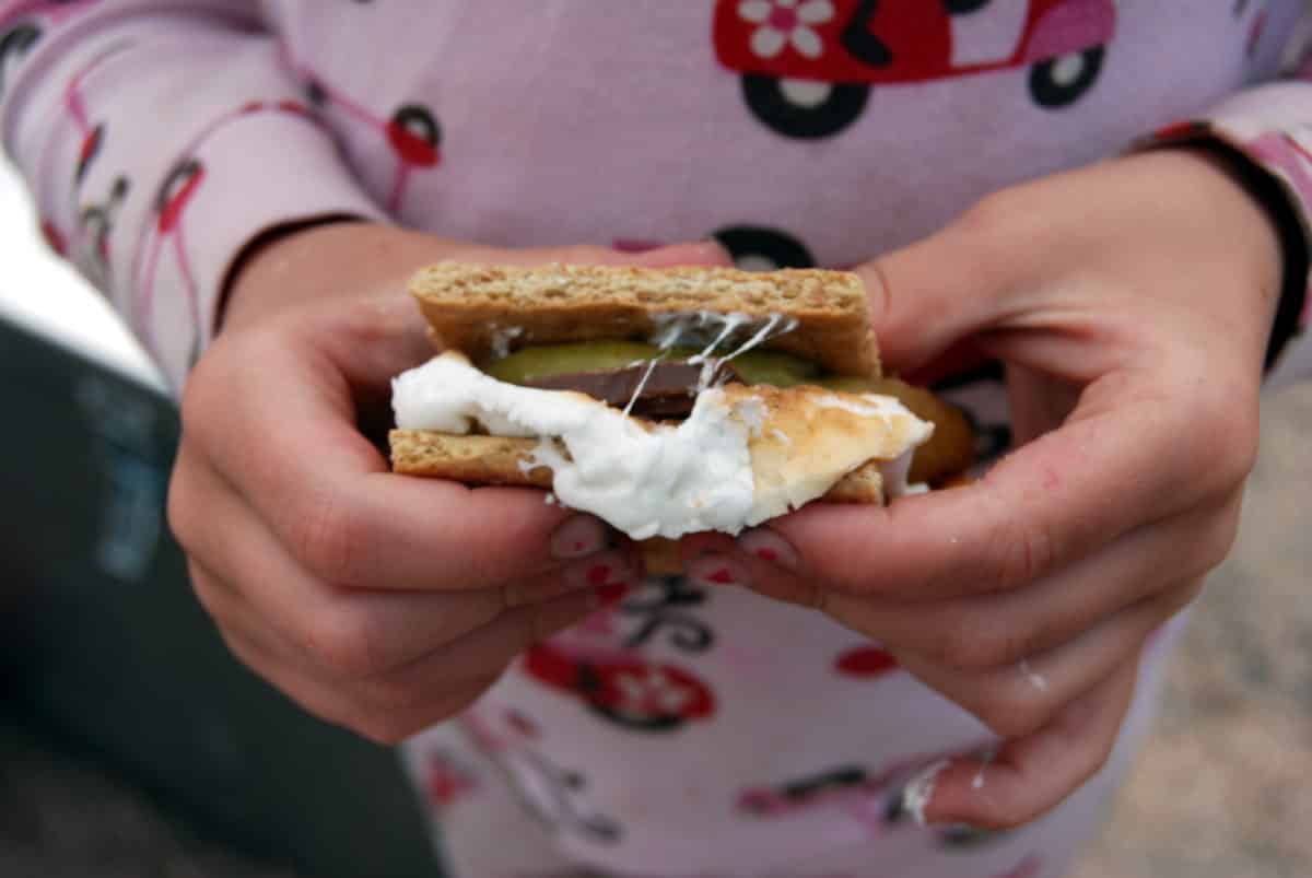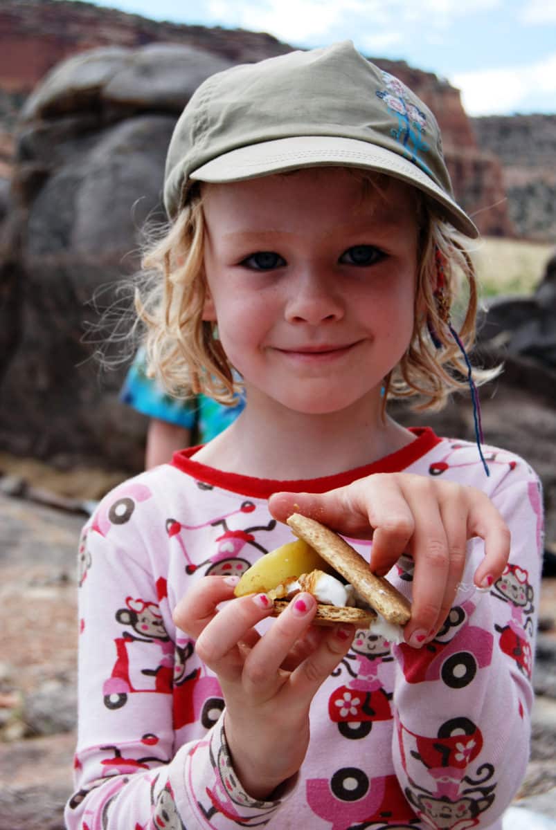 Whether you are car camping or backpacking, it’s advisable to portion out food and condiments into smaller packages. Look at recipes before you go to see exactly what you need for each dish. For Apple Pie S’mores, you can have kids measure out the cinnamon sugar and put it into a little plastic bag and label it. In fact, label everything! A friend of mine tells the camp story of how she and her siblings were rebelling against pasta made in camp. They did, indeed, call it yucky. Her parents just thought the kids were being difficult. Turns out, her mom hadn’t labeled the olive oil or the dishwashing soap and she mixed up the two.