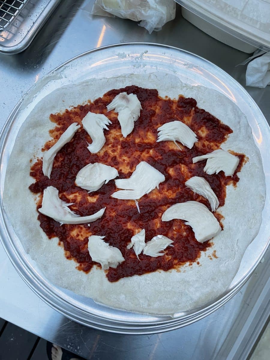 This recipe also owes thanks to Ed LaDou, who legitimately invented the BBQ Chicken Pizza at California Pizza Kitchen. LaDou came to CPK from Wolfgang Puck’s famed restaurant Spago, and without him, well, we very well might not have the glory that is BBQ chicken pizza. Although this recipe has distinctly Korean flavors, and buldak sauce is not BBQ sauce, there’s no denying that there are similarities.