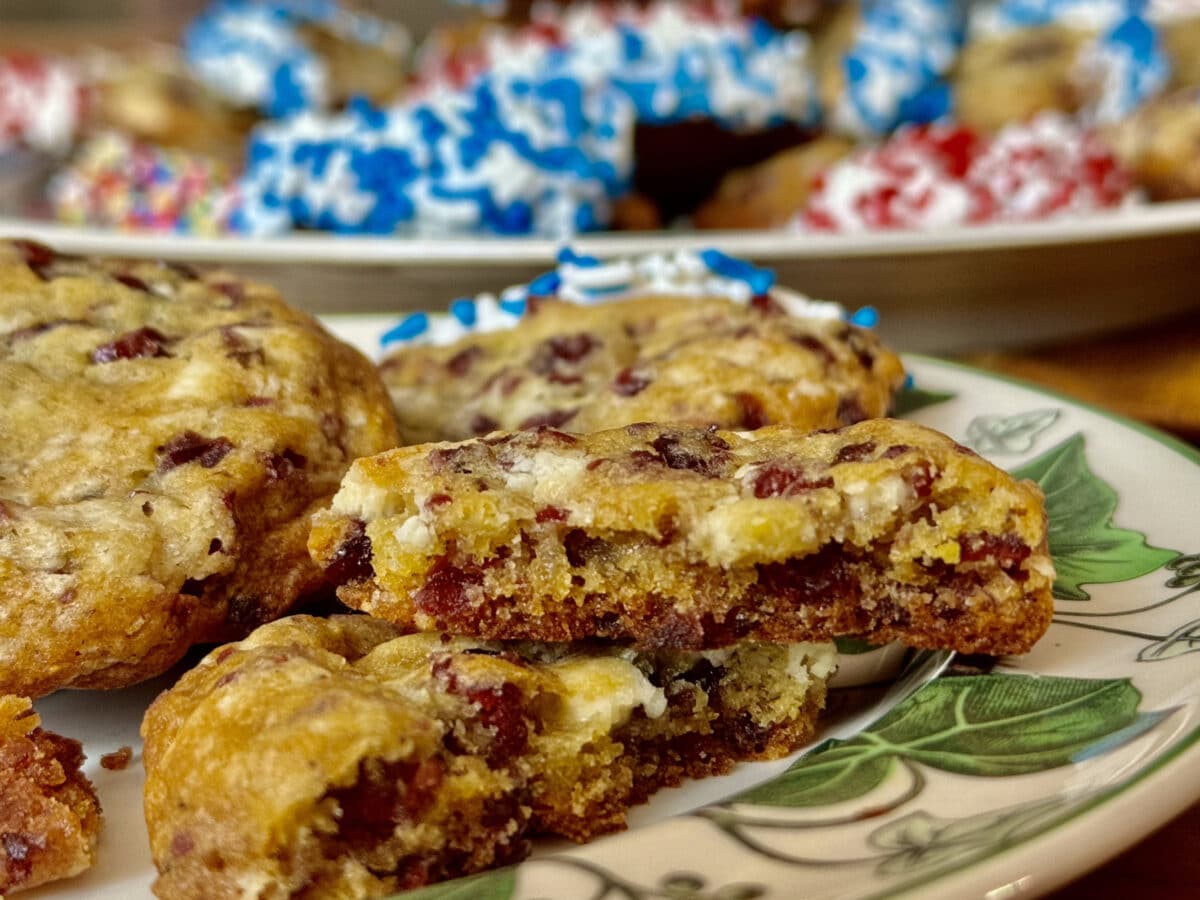 I’ve always been meaning to create a cookie with the combination of cranberries and white chocolate. White chocolate alone is too sweet and I love cranberries, so this seemed like the perfect holiday cookie! A nice attribute of this cookie is that it improves with age. After a day or two you’ll find that the flavors meld and develop. They can be stored in a tightly covered container at room temperature for two weeks, refrigerated for four weeks, or frozen for up to three months.