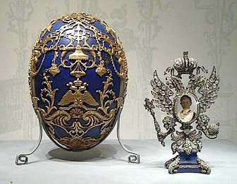 These precious eggs, made of gold, rock crystal, decorated with diamonds, amethyst, and rubies, often concealed something even more extravagant within. All this artistry and indulgent expense was meant merely to charm and nothing more. No wonder the serfs revolted.