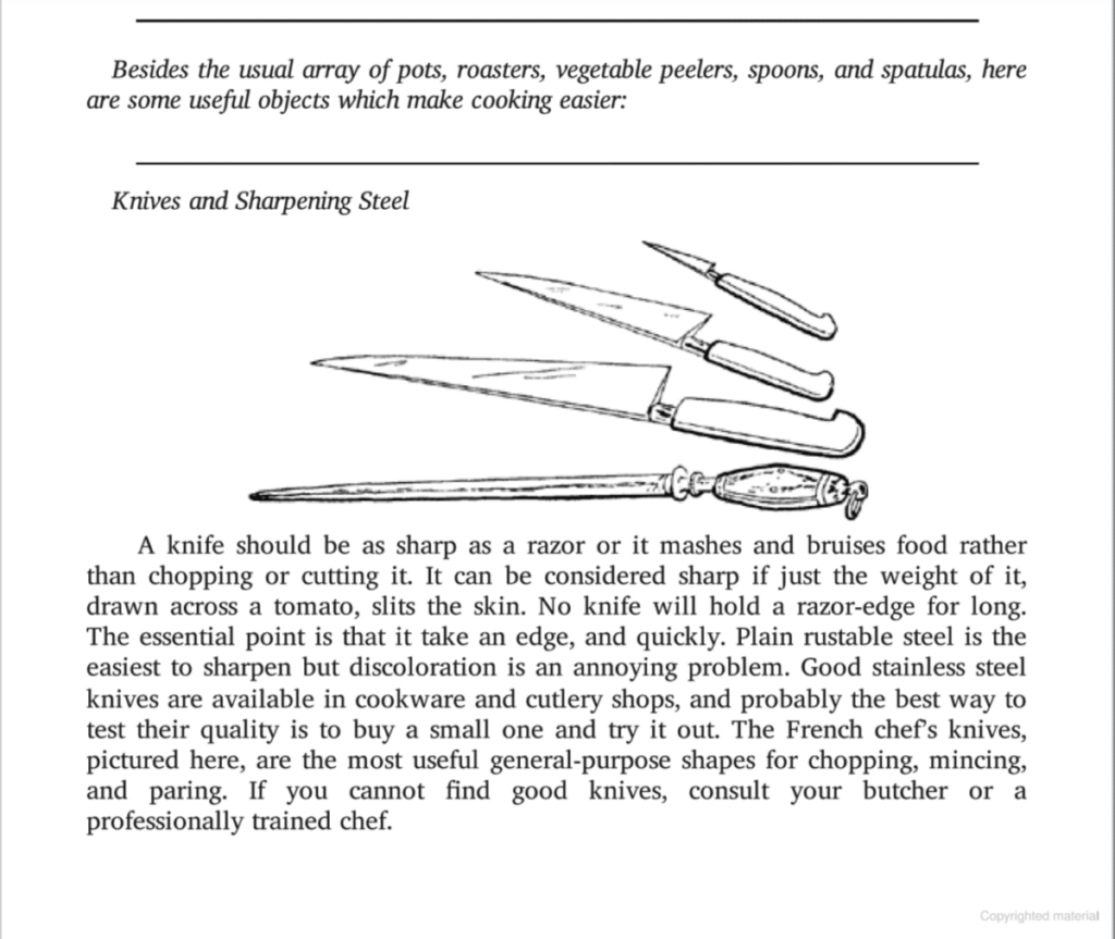 Her pet peeve, dull kitchen knives, is an interesting story, as outlined by the NEHS: