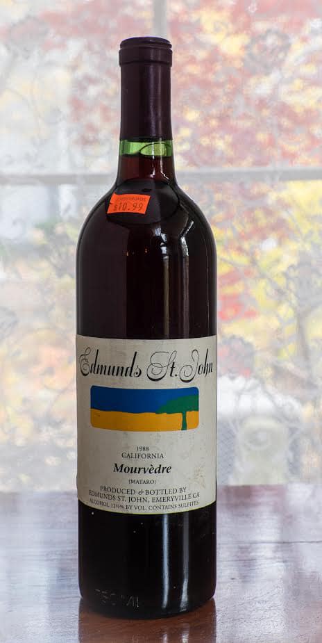 The vintage of that Cline Mourvèdre was 1995. By the time I ordered it (twice on the golf course, and then I bought six bottles of it when I got back home), I owned the odd bottle that is the subject of this piece: 1988 Edmunds St. John California Mourvèdre.