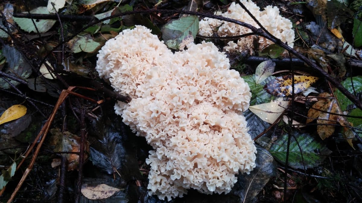 This winter, when he’s not working, my husband Clay heads out nearly every day to hunt. Sometimes he goes twice a day. We’ve taken the stance in our household — well, honestly, it’s mine, not his or the dog’s — that we’ll try to limit our meat consumption to what we can harvest from the land and water around us. Hence the daily drives into the foothills of the Willamette Valley, searching for the elusive — but only when they want to be — black-tail deer. A few weeks ago we looked for elk, but they didn’t materialize, either. What we did come upon, however, was the even more elusive Sparassis radicata mushroom (Sparassis crispa it’s often called, but that’s the name applied to the variety that grows in eastern North America), commonly known as the cauliflower mushroom. If you asked me, though, I’d just tell you that it’s the egg noodle mushroom. When it really comes down to it, that’s what you’d have to look for in the deep woods. A giant, tangled mess of just-cooked egg noodles that someone left behind.