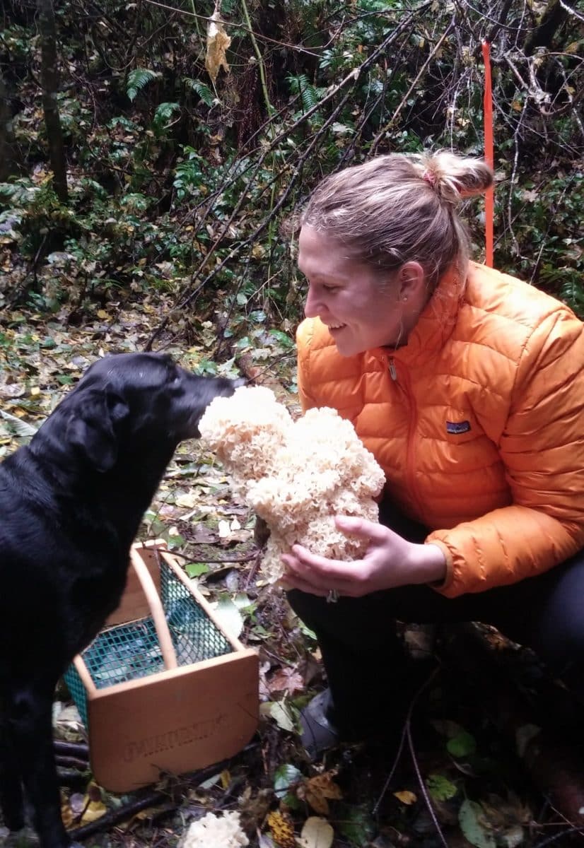 Once home, there’s the matter of cleaning and cooking to attend to. The maze-like folds are notorious for harboring dirt and insects, so I take my time, swirling the broken-off pieces in water to expel anything I don’t want to eat. As luck would have it, though, Clay has to leave town the next day for work. I’m not convinced that I can do justice to the fungus on such short notice with no recipe yet on hand, so I enlist the help of a friend. Her instructions are simple: slice and clean the mushroom, sauté a little garlic in olive oil and toss the mushroom in. Let it cook down a bit, and freeze it until I’m sure of what I want to do with it. So simple. And that’s exactly what I do, except that I have the pleasure of wonderfully flavored oil and liquid left over that I immediately use to flavor butternut squash soup for dinner that night. The rest of the mushroom goes into freezer bags and is labeled according to how I think I’ll use it. Woodier parts are kept for broth and the rest will have to wait for the big dishes I have planned with my new friend Nicci, a chef who happens to know a lot about cooking with mushrooms and who just can’t wait to show me her collection of fungus and foraging cookbooks. On a cold, blustery day when Clay is home again, Nicci, her mother-in-law, and the two labs Jordan and Brandy host me for a cooking afternoon. Oregon does have a knack for providing in the most unexpected ways. ![]()