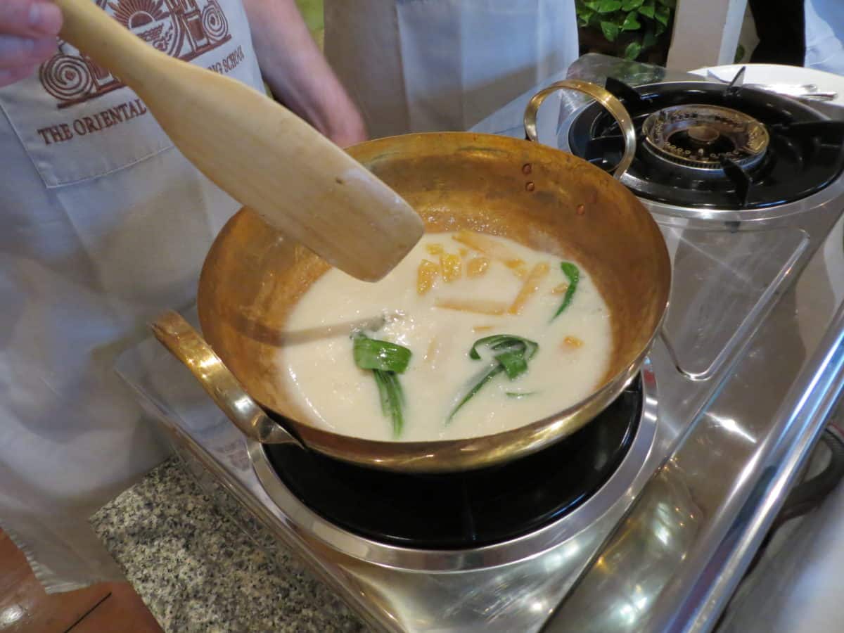 He especially loved his mother’s green curry. As he described how she pounded the paste, I could almost smell the fragrance coming from the mortar as he slowly named each ingredient his mother added. Today he has proudly duplicated his mother’s recipe, which is served to guests at the Oriental Hotel.