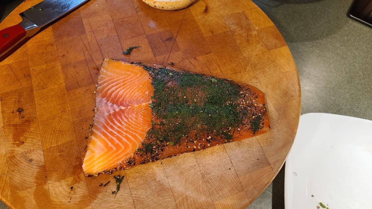 While I typically bake my own bread, make cheese, and grow a LOT of peppers, today’s focus is the homemade gravlax and smoked cured salmon.