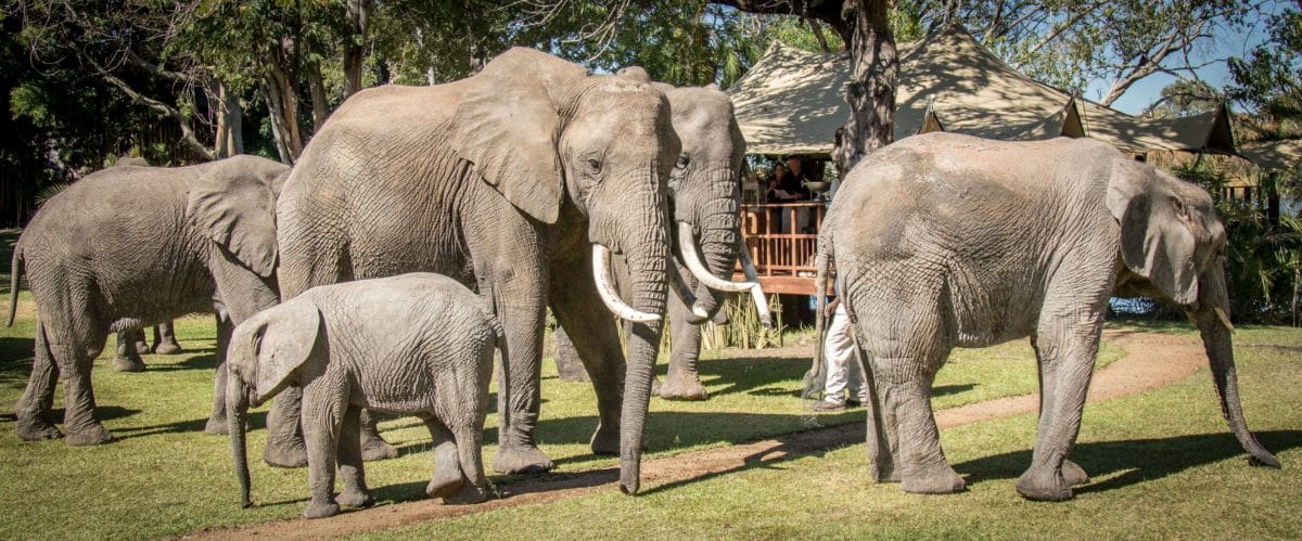 Designed and built by the Explorer Club Africa, The Elephant Café sits twenty-four guests under a Bedouin tent, positioned beneath ancient riverine trees alive with native birds and vervet monkeys. Guests have the option of arriving by jet boat — a thrilling thirty-minute ride upriver from Victoria Falls, providing the opportunity to see hippos, crocodiles, giraffe and zebra — or they can travel by vehicle through the scenic Mosi-oa-Tunya National Park inhabited by wild elephants, rhinos, antelope, baboons, and other bush wildlife.
