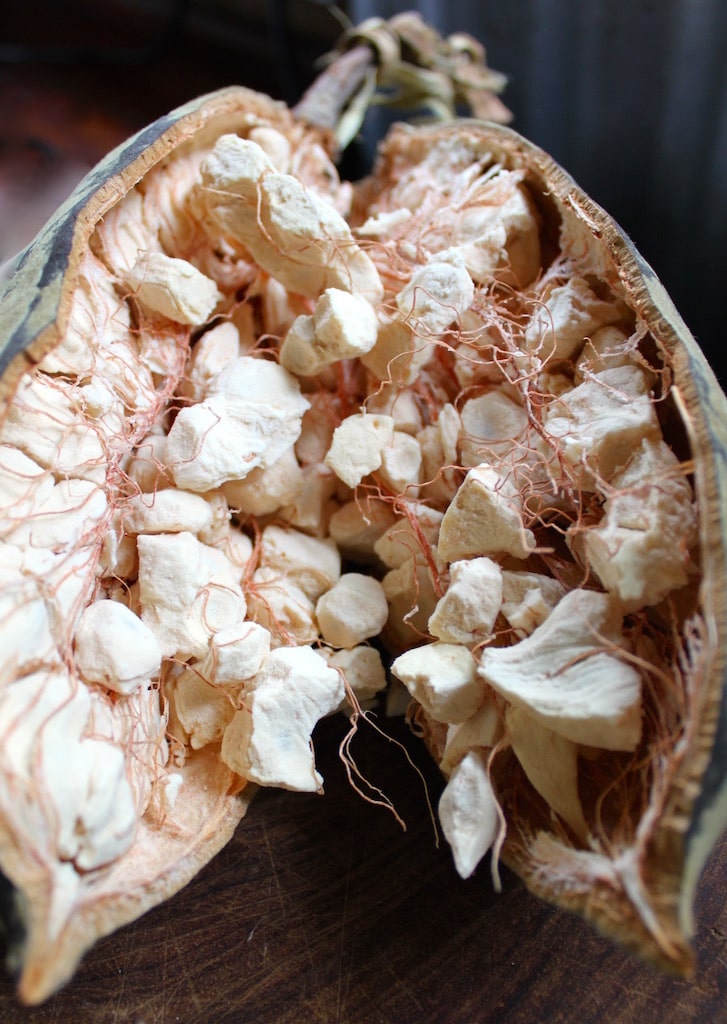 Many wild edibles grow in the bush just beyond our house. Our house is built around a massive mongongo tree, and in May each year it rains hundreds of nuts down on to our roof and floor. They are a highly nutritious annual gift from nature. We use these oily, soft nuts, similar in size to a hazelnut, in dishes ranging from biscotti, to tagines, to ice cream, to vegan mayonnaise.