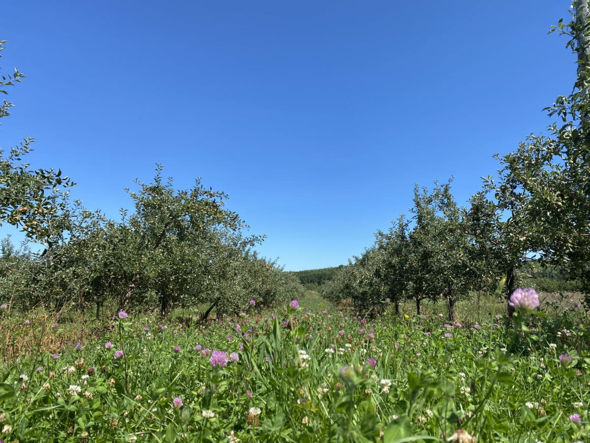 Every year, the soil is tested and the exact minerals are delicately sprinkled into the soil. The orchard is divided up by apple variety so samples are taken from all across the land to determine what each individual row needs to grow and thrive. They also practice polyculture which is an ancient farming practice of growing multiple crops at the same time. Plants do take nutrients from the soil but they also replace certain elements as well. Polyculture is not only an efficient use of the land, it is also a way for one plant to feed another and vice versa. Nature has known that fact forever but us humans are finally getting back to these tried-and-true practices. Today, the orchards are bordered by lush stocks of purple clover that my cousins and I pick to try and get a taste of the sweet nectar that the petals hold on their ends.