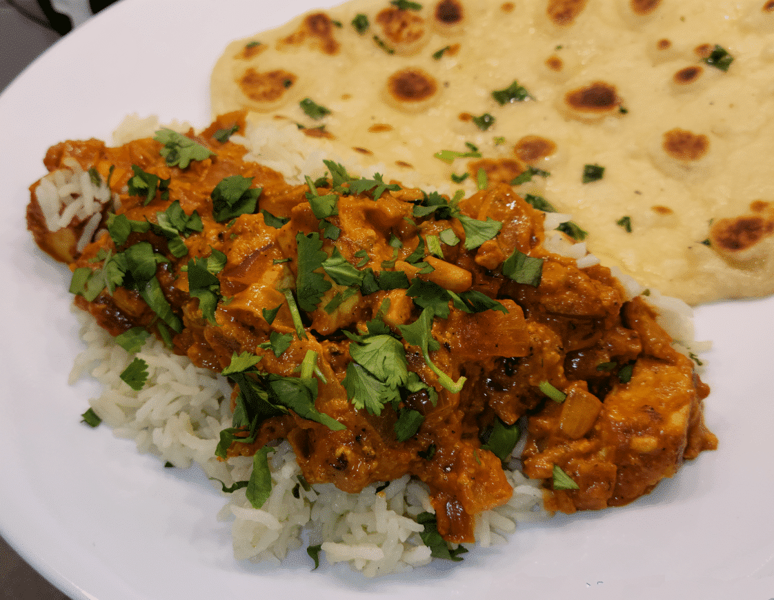 My son is vegetarian, and I often want to find things to cook for him that aren’t just pre-packaged foods or simple salads. So I started looking at my recipes and thinking about what could translate most easily from carnivore to vegetarian. I began with my chicken tikka masala recipe. I theorized that replacing the chicken 1:1 with chunks of tofu would turn out perfectly, and to my surprise it did! The texture and flavor of the tofu is wonderful. The spice profile of the tikka masala dish remains excellent.