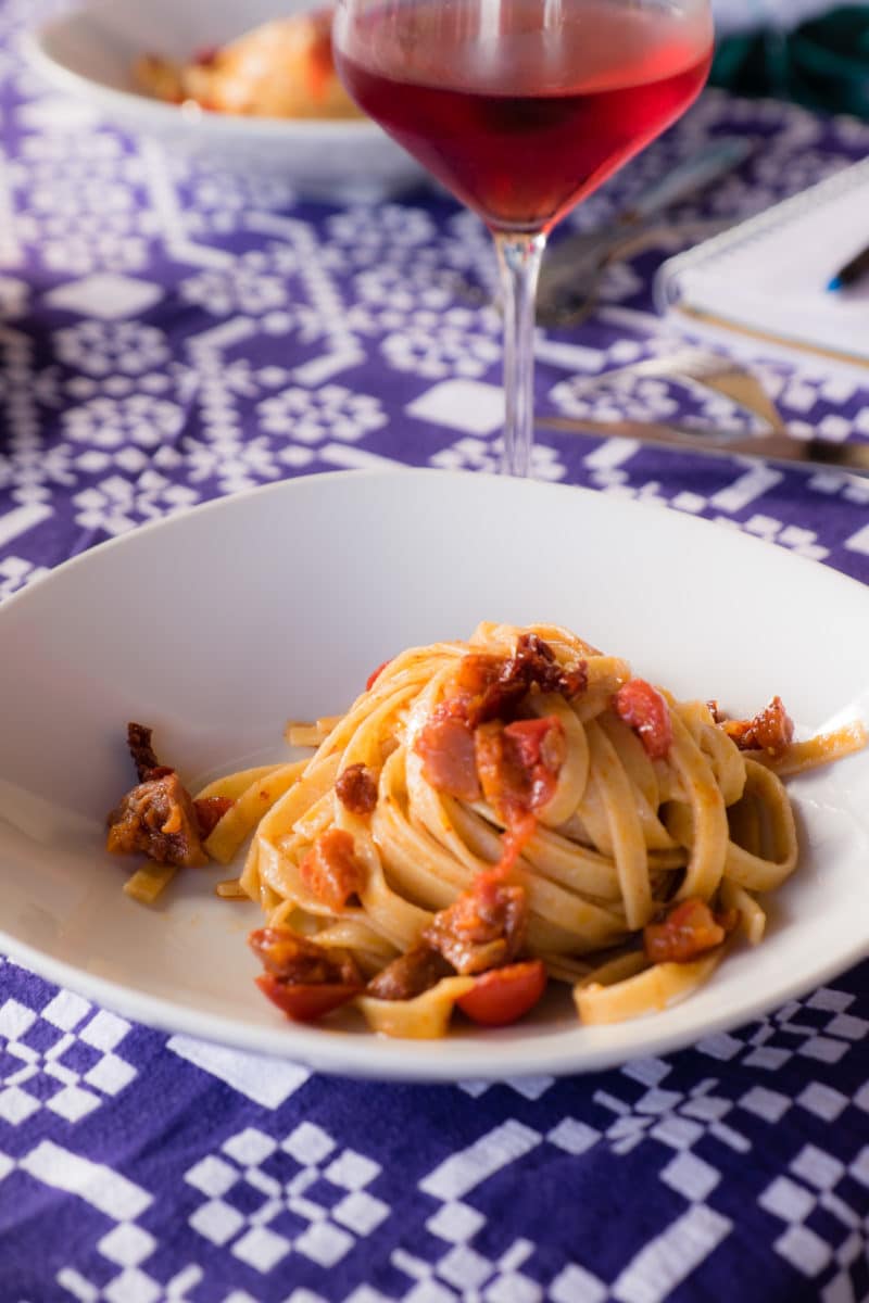 Later that evening, when we were ensconced in a sweet little restaurant, I wondered how I could possibly find the room or the will to eat after having had a home-cooked pasta banquet just a few hours before. Yet once we started to eat the simple, small servings of the regional food, especially savory little fried morsels of cheese souffle, I knew we were in the hands of another talented chef. We finished with small slices of rich cake, a family recipe from the chef’s mother.